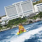 Korumar Hotel Deluxe Kusadası attractif, doté de 2 plages privées, se trouve à environ 6 km de la Plage Ladies Beach à Kusadası. Doté de 357 chambres avec vue sur la mer, l'hotel fantastique est situé à environ 10 minutes en voiture d'Aqua Fantasy Land.